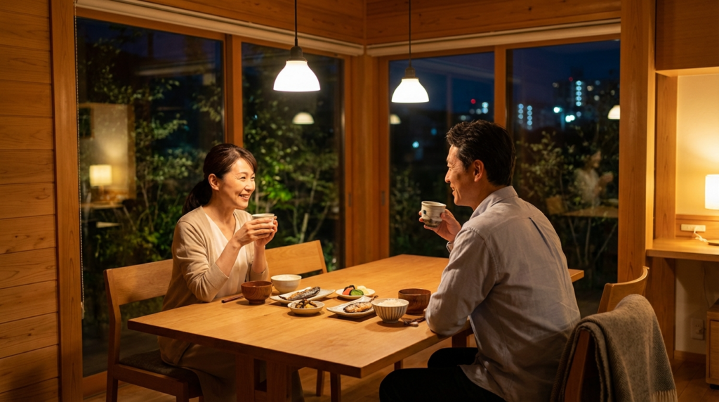 夫の帰宅時、一緒にテーブルを囲む選択肢