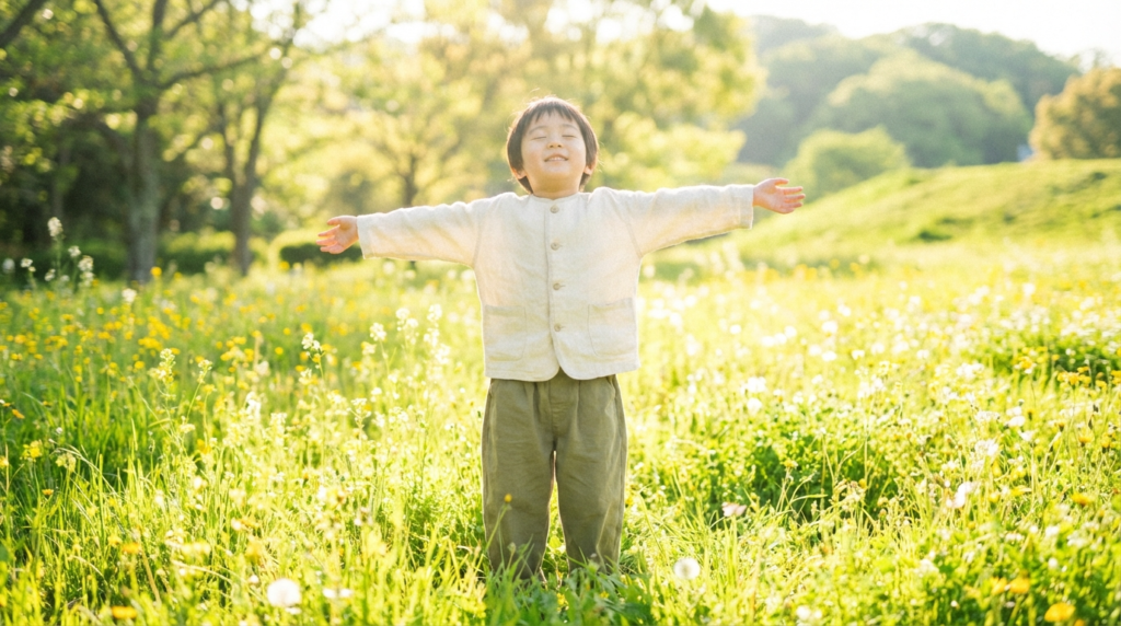 「子どものためにやらなきゃ」と義務のように感じてしまうと、その空気は子どもにも伝わります。逆に、親が「あ、この花かわいいな」「風が気持ちいいね」と自然体で楽しんでいれば、子どもはその姿を見て、安心して自分も感じるようになります。