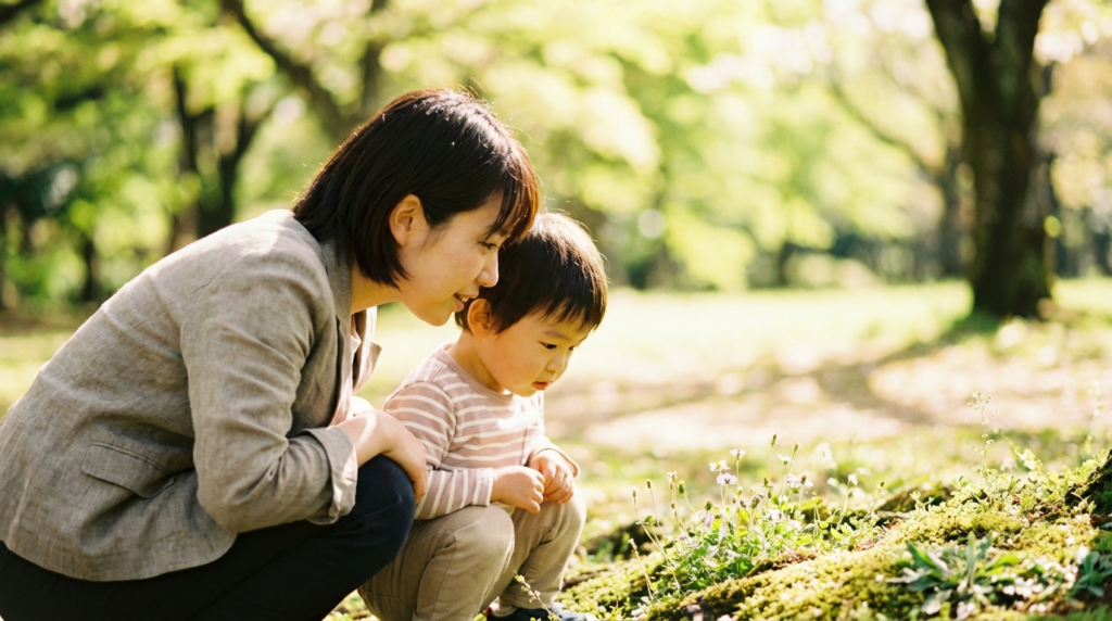 「教えよう」としなくていい。一緒にしゃがんで、一緒に「わあ」と言う。それが、いちばんの自然体験です。