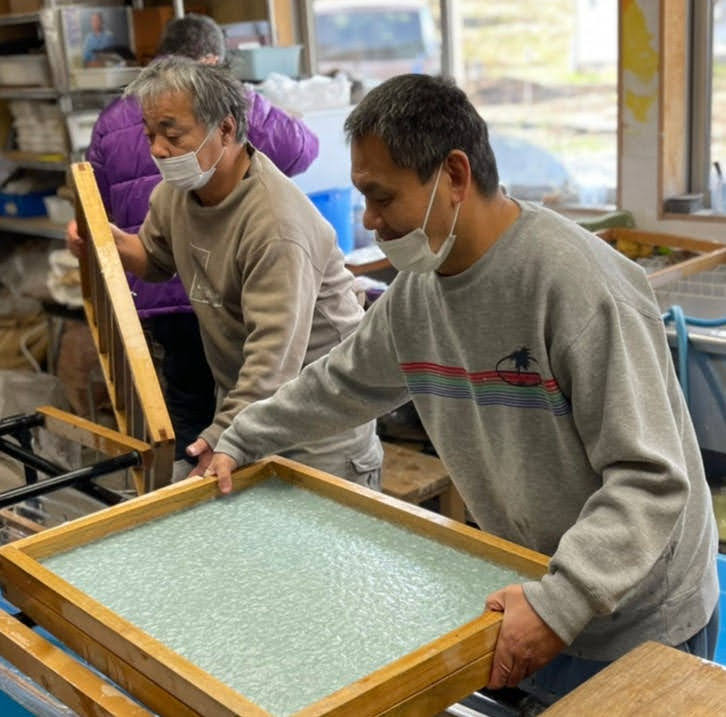 ただ製品を製造するだけではありません。近隣の保育園の子どもたちが自分たちの卒業文集の表紙を漉きに訪れたり、アーティストが自身の作品の素材としてこの和紙を選んだりと、ここは多様な人々が交差する交流の場にもなっています。