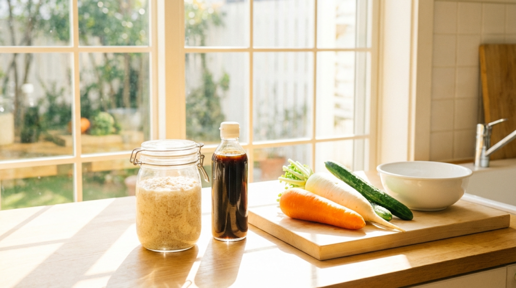 | ③ 調味料の入れ替え | 塩→塩麹、醤油→醤油麹に | 特別な料理は不要 | 0分(置き換えるだけ) |